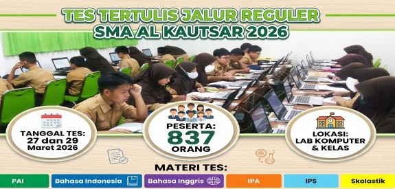Rizal menjelaskan, materi yang diujikan pada tes tertulis jalur reguler adalah Pendidikan Agama Islam, Bahasa Indonesia, Matematika, IPA, IPS, Bahasa Inggris dan Skolastik. Tes menggunakan sistem Computer Based Test (CBT) yang telah disiapkan oleh tim panitia PMB Al Kautsar.