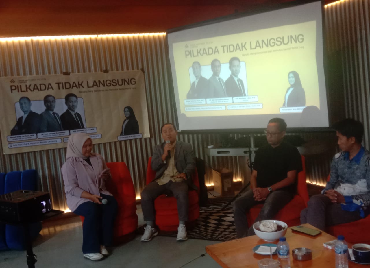 PORTALLNEWS.ID ( Bandar lampung ) — Sejumlah akademisi Universitas Lampung (Unila) menyoroti sisi positif wacana pengembalian pemilihan kepala daerah melalui mekanisme perwakilan di DPRD atau pilkada tidak langsung. Mereka menilai, model pemilihan langsung yang telah berjalan lebih dari dua dekade justru melahirkan persoalan berulang yang sulit diputus, terutama praktik politik uang dan tingginya biaya politik.