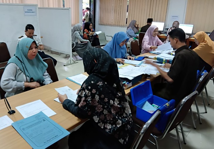 Para pendaftar Kelas Unggul dan Kelas Plus SMP dan SMA Al Kautsar mulai mengantri di Sekretariat PCMB Yayasan Al Kautsar, Senin, 19 Januari 2026. FOTO/DOK