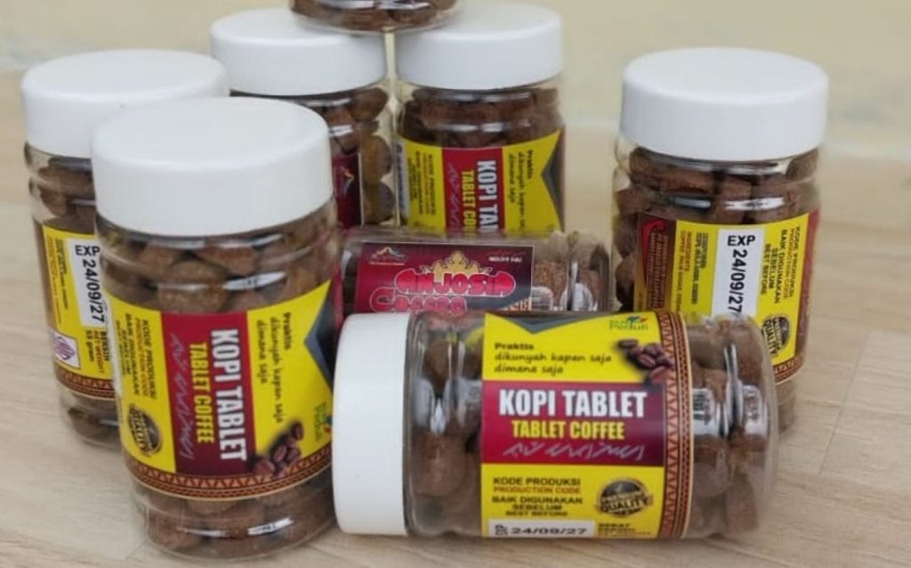 “Kopi tablet ini juga bisa dikonsumsi langsung tanpa diseduh, seperti permen kopi atau bisa juga dikunyah. Kopinya menggunakan kopi Robusta asli Lampung sehingga lebih kuat aroma dan cita rasanya,” tutur Amenx.