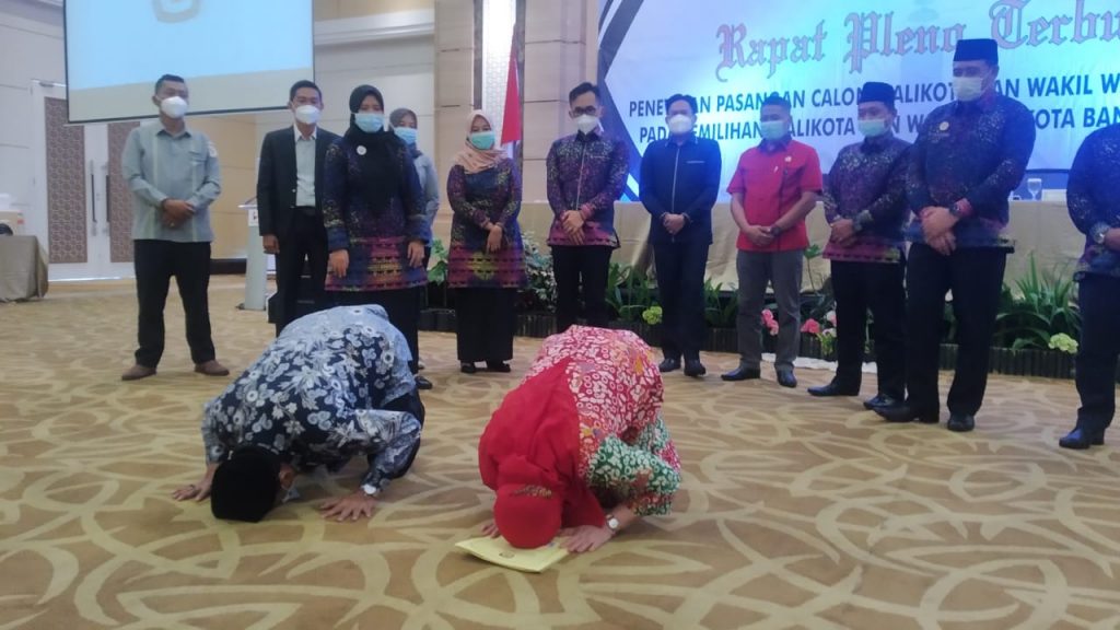 PORTALLNEWS.ID – Eva Dwiana-Deddy Amrullah langsung melakukan sujud syukur di tengah ruang rapat pleno,  usai mendengar keputusan KPU Bandar Lampung yang menyatakan mereka sebagai pemenang Pilkada Bandar Lampung, Kamis (18/2/2021).