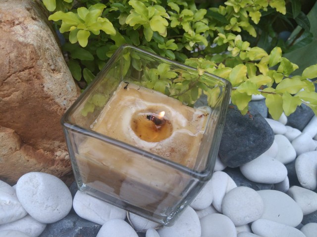 Proses pembuatan lilin aroma terapi cukup mudah. Sarang lebah dipanaskan hingga meleleh, kemudian ditambah ekstrak sereh wangi dan daun mint, setelah itu langsung dicetak.