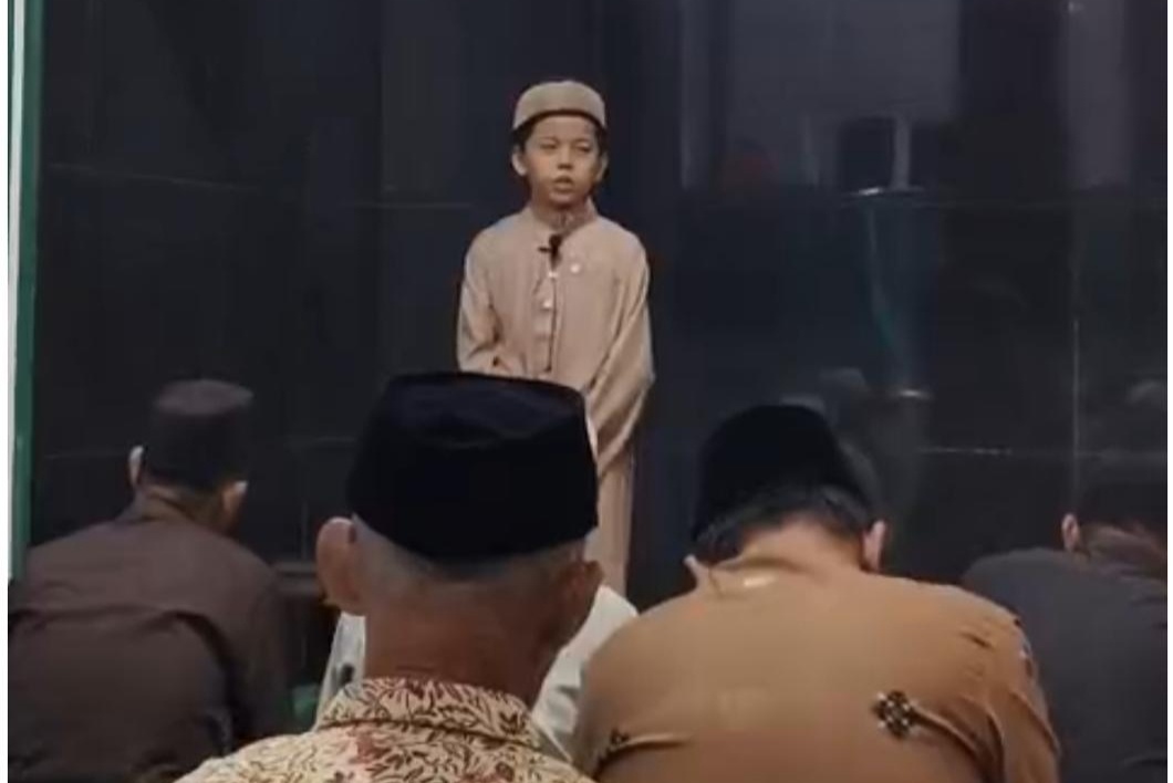 Dai cilik SD Al Kautsar mengisi ceramah agama di salah satu masjid di Bandar Lampung. FOTO/DOK