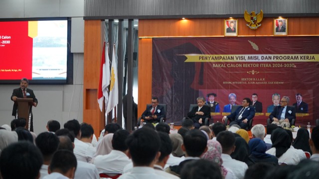 Lima bakal calon rektor Itera, yakni Prof. Dr. Aswan, S.T., M.T. (Institut Teknologi Bandung), Prof. Dr. Elfahmi, S.Si., M.Si. (Institut Teknologi Bandung), Prof. Dr. Ir. Fahmi, S.T., M.Sc., IPU. (Universitas Sumatera Utara), Prof. Ismunandar, Ph.D. (Institut Teknologi Bandung), dan Prof. Dr. Ir. M. Faiz Syuaib, M.Agr. (Institut Pertanian Bogor) memaparkan visi-misi yang sesuai dengan arah pembangunan Itera sebagai kampus yang tidak hanya unggul secara akademik, tetapi juga mandiri, adaptif, berdaya saing global dengan tetap memberi dampak nyata bagi masyarakat.