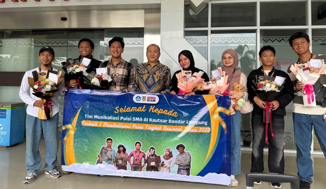 “Alhamdulillah, SMA Al Kautsar berhasil meraih juara 1. Terimakaih atas doa dan dukungan dari guru pembina, pelatih, dan Bapak-Ibu guru serta orang tua siswa, sehingga siswa-siswa kita kembali mengharumkan nama Al Kautsar dan Provinsi Lampung di kancah nasional,” ujar Eko Anzair, Jumat, 19 September 2025, usai menyambut tim di Bandara Raden Inten II.