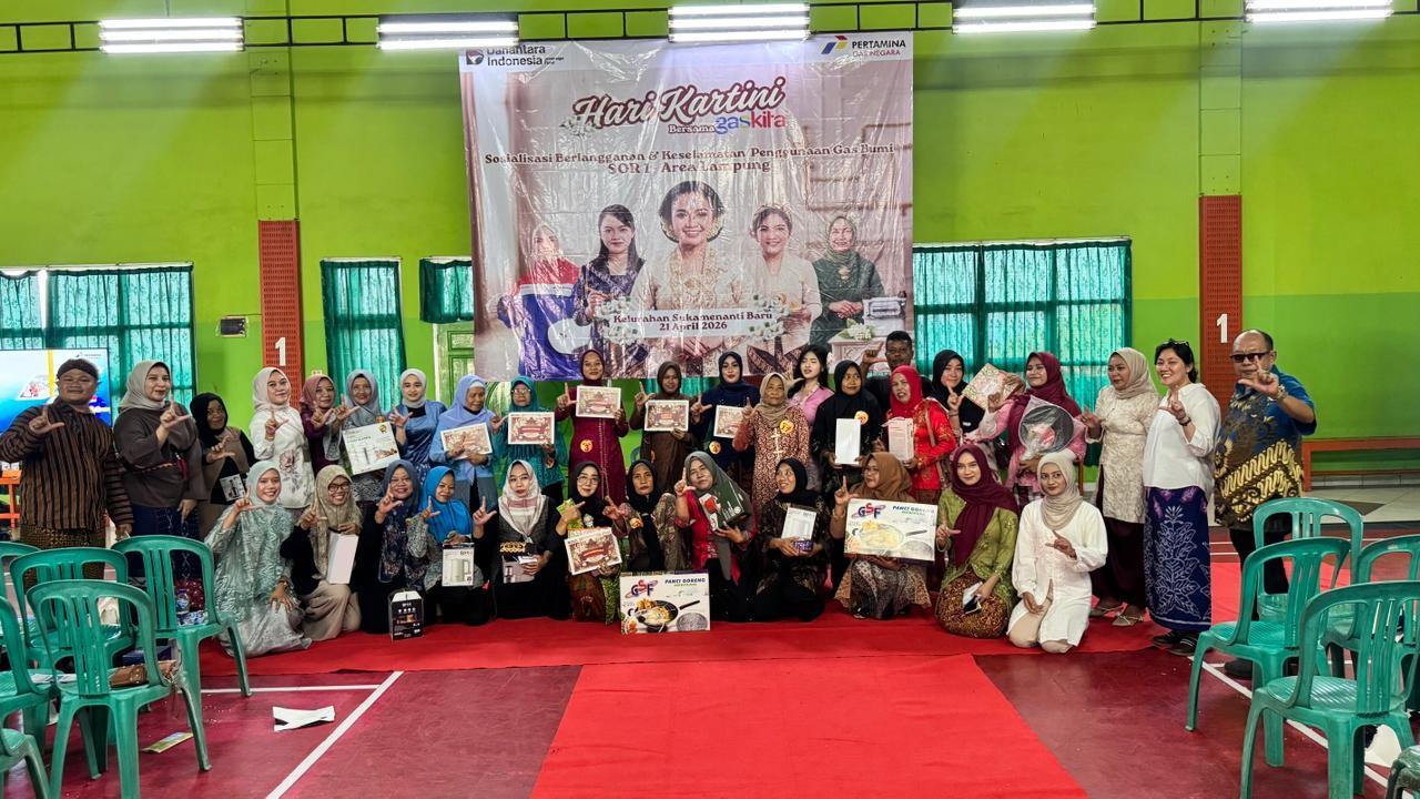 PORTALLNEWS.ID ( Bandar Lampung ) – Puluhan warga Kelurahan Sukamenanti Baru tampak antusias mengikuti lomba peragaan busana berkebaya yang digelar PT Perusahaan Gas Negara (Persero) Area Lampung dalam rangka memperingati Hari Kartini. Kegiatan ini berlangsung di GOR Bintang, Kecamatan Kedaton, Kota Bandar Lampung, Selasa (21/4/2026).