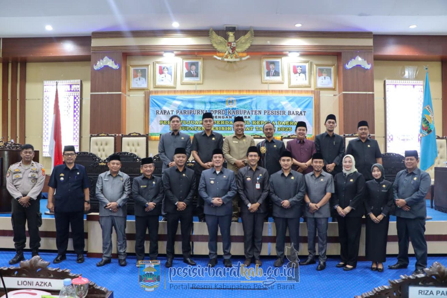 PORTALLNEWS.ID ( PESISIR BARAT ) –Bupati Pesisir Barat (Pesibar) Dedi Irawan menghadiri rapat paripurna DPRD dengan agenda Persetujuan Tiga Rancangan Peraturan Daerah (Ranperda) Usul Kepala Daerah, di ruang rapat paripurna DPRD Pesibar, Jumat (21/11/2025).