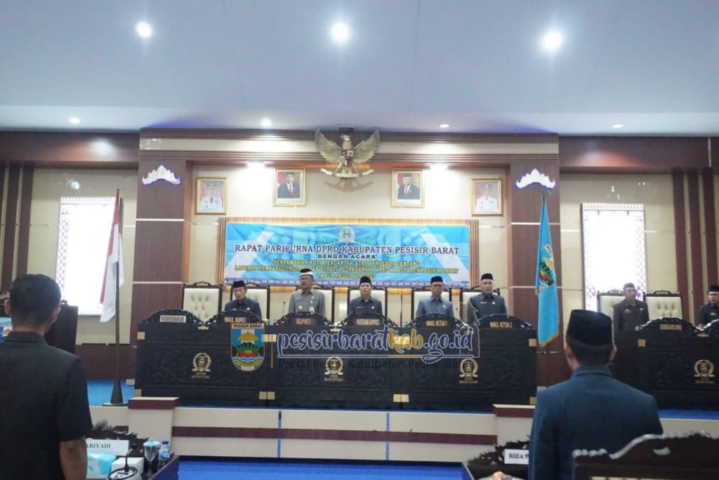 PORTALLNEWS.ID ( Pesisir Barat )! – Bupati Pesisir Barat (Pesibar) Agus Istiqlal menghadiri rapat paripurna Dewan Perwakilan Rakyat Daerah (DPRD) Pesibar dengan agenda penyampaian nota pengantar atas Rancangan Peraturan Daerah (Ranperda) tentang laporan pertanggungjawaban Bupati pelaksanaan Anggaran Pendapatan dan Belanja Daerah (APBD) Pesibar Tahun Anggaran 2023, di ruang rapat paripurna DPRD Pesibar, Rabu (19/6/2024).