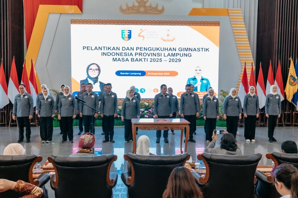 PORTALLNEWS.ID ( Bandar Lampung ) – Pengurus Gimnastik Indonesia Provinsi Lampung masa bakti 2025–2029 resmi dilantik di Mahan Agung, Kamis (4/12/2025). Kepengurusan baru yang diketuai Purnama Wulan Sari Mirza menargetkan peningkatan prestasi atlet senam Lampung dari nasional hingga ke kancah internasional.