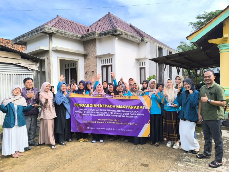 PORTALLNEWS.ID (Metro) – Tim dosen dan mahasiswa Universitas Muhammadiyah (UM) Metro melatih Ibu-Ibu Dasawisma Desa Sidodadi, Kecamatan Pekalongan, Lampung Timur membuat tekwan menggunakan limbah kulit semangka. Para peserta juga dilatih menghitung cost packaging sebagai dasar penentuan harga jual produk.