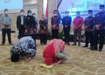PORTALLNEWS.ID - Eva Dwiana-Deddy Amrullah langsung melakukan sujud syukur di tengah ruang rapat pleno, usai mendengar keputusan KPU Bandar Lampung ...
